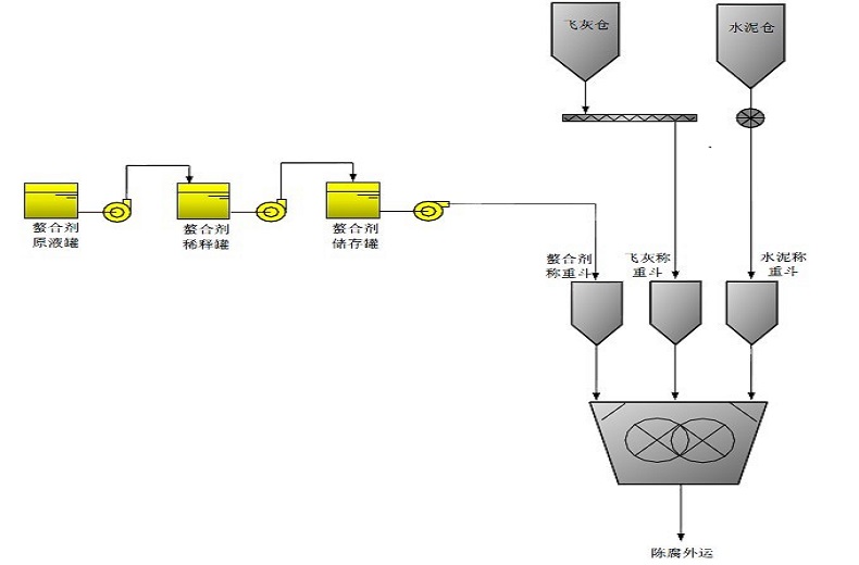 垃圾焚燒煙氣中收集的飛灰含有重金屬、二噁英等有害物質(zhì),按一定比例加入水、螯合劑、水泥將其固化后填埋。
