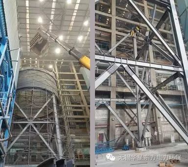 針對(duì)3.4號(hào)爐的技改,屬于室內(nèi)施工,起吊高度受限,華星東方團(tuán)隊(duì)采取了BIM設(shè)計(jì)模式,在工廠將煙氣凈化系統(tǒng)拆成模塊運(yùn)輸?shù)浆F(xiàn)場(chǎng)后進(jìn)行片狀吊裝和安裝,克服了場(chǎng)地小,鍋爐確保生產(chǎn)不間斷,需要切換運(yùn)行造成工期短的困難。
