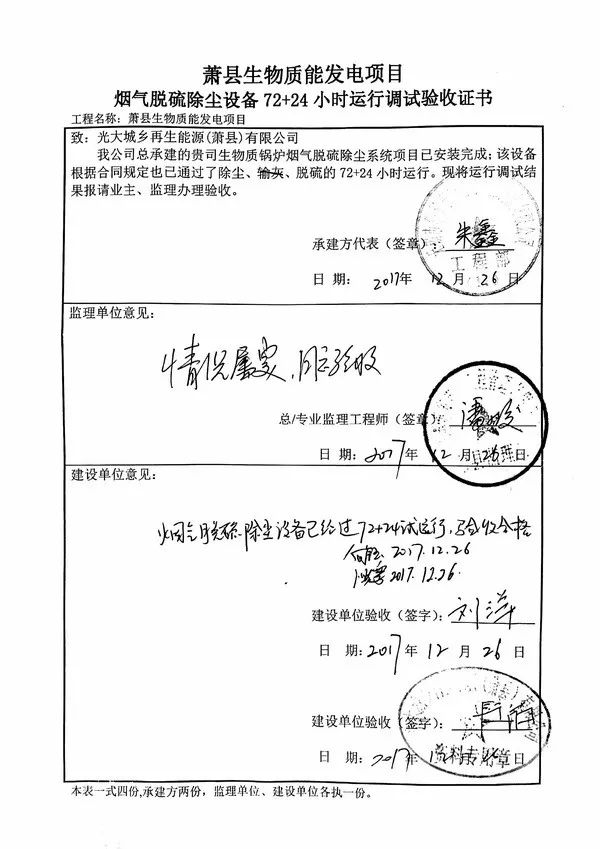 安徽蕭縣1x130t/h高溫高壓生物質(zhì)燃料鍋爐煙氣凈化工程通過72+24小時(shí)驗(yàn)收