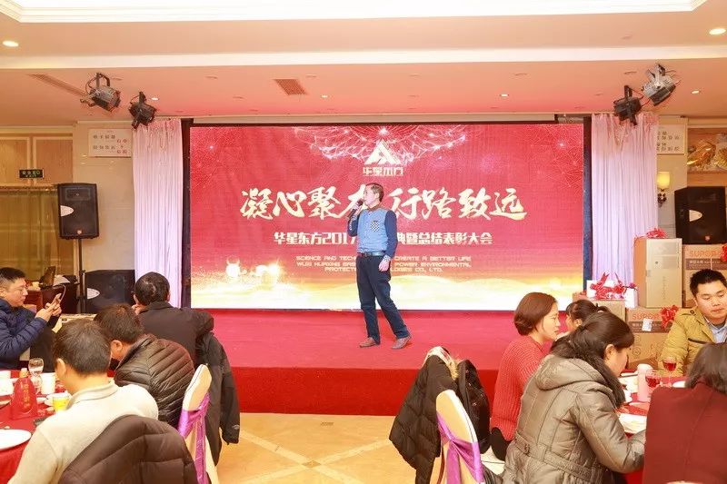 年會現(xiàn)場氣氛熱烈而歡快,華星東方總部、蘇州、泰州、膠州等各地分支機構(gòu)及生產(chǎn)制造中心工作人員和代表歡聚一堂。公司總經(jīng)理吳浩侖先生作了年度總結(jié)和新春致詞。在總結(jié)報告中,總經(jīng)理對2017年各部門所取得的成績給予了充分肯定,在經(jīng)歷了承上啟下的2016年度之后,本年度的工作依舊繁雜而忙碌,我們在環(huán)保的細分領域深耕細作,心懷夢想,不忘初心,埋頭致力于煙氣治理領域的技術開發(fā)和工程建設。報告的最后,也對新一年度的工作寄予了美好的期望和祝福。