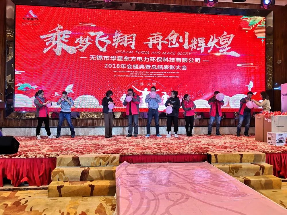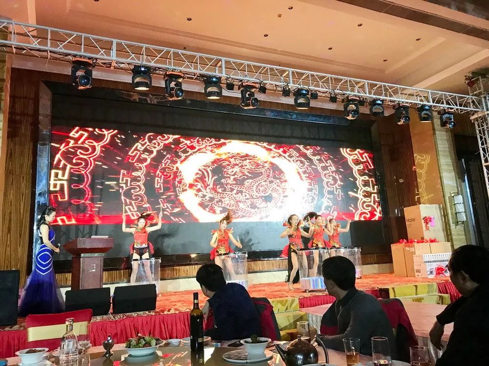 華星東方總部、無錫、泰州、膠州等各地分支機構(gòu)及生產(chǎn)制造中心工作人員和代表歡聚一堂,共聊今昔,但仍有部分職工堅守在全國各地的工程崗位上。年會盛典在一場紅火的水鼓舞中拉開序幕。富有韻律的鼓聲陣陣,猶如激昂奮發(fā)的青春,華星人邁著整齊劃一的堅定步伐,走過了勵精圖治的2018年。 The working staff and representatives of HXET Headquarters, other branches and manufacturing centers in the cities of Wuxi, Taizhou and Jiaozhou,etc gathered together to chat about the past and the present. However, there were still some employees who continued to work at their engineering posts all over the country. The annual meeting celebration was kicked off with a lively performance of water drum dance featuring rhythmic drum sounds which represented the passionate youth owned by the whole staff of HXET who paid every effort to successfully make the company prosperous in the year 2018 by sticking to a uniform and firm target.