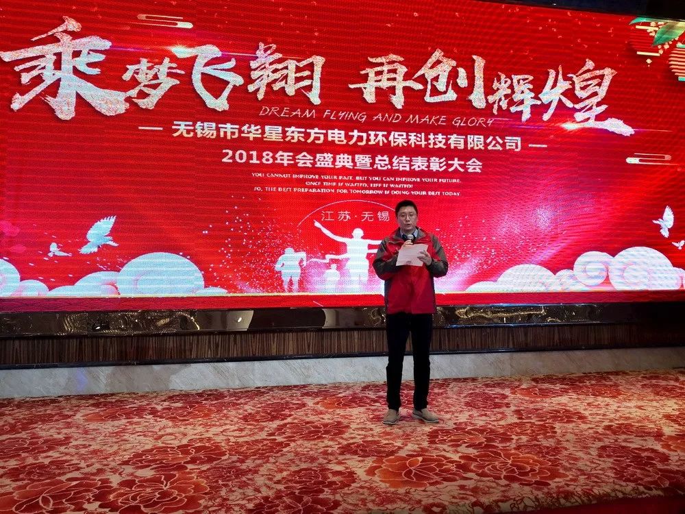 2019年1月11日,華星東方以“乘夢飛翔?再創(chuàng)輝煌”為主題的2018年度總結(jié)表彰大會暨年會盛典在無錫騰宏大酒店隆重召開,華星東方各級領(lǐng)導(dǎo)及蘇州東方鐵塔股份有限公司董事長韓匯如先生、青島東方鐵塔股份有限公司董事會秘書何良軍先生等一行出席并參加了此次年會和聯(lián)歡晚宴。 Huaxing East held its 2018 annual summary and commendation conference and annual meeting grand ceremony solemnly on the theme of flying with the dream to create the greater glory in Wuxi Tenghong Grand Hotel on January 11, 2019. The leaders at all levels of HXET, together with Mr. Han Huiru, Chairman of Suzhou East Tower Co., Ltd., and Mr. He Liangjun, Secretary of the board of directors of Qingdao East Tower Co., Ltd., were present and attended the annual meeting and the gala dinner.