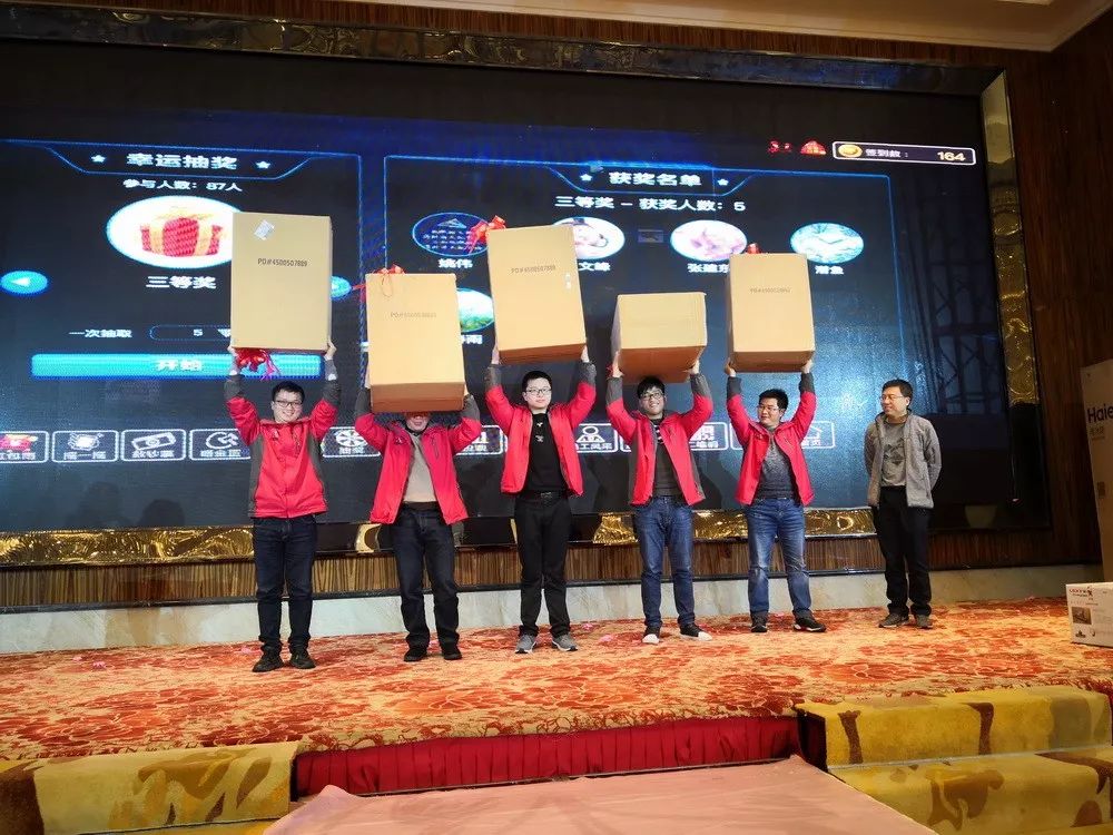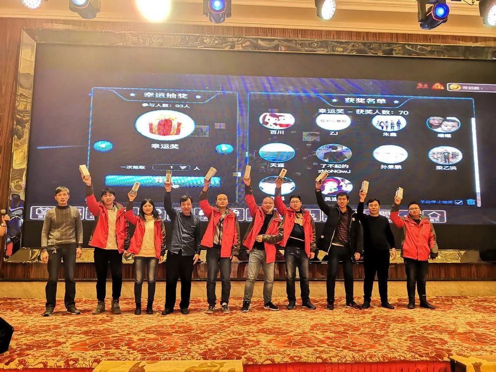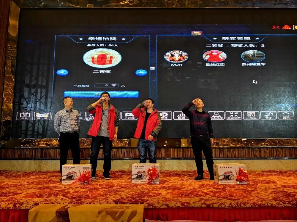 晚宴和年會抽獎環(huán)節(jié)始終是另一種“萬眾矚目”。觥籌交錯中,推杯換盞間,聊的是家常事,談的是同事情。晚宴同時穿插的年會節(jié)目也是一場接著一場,互動游戲、熱舞、獨唱、中國舞、大咖模仿秀等等。抽獎環(huán)節(jié)更是掌聲與歡呼聲此起彼伏,高潮迭起。 The dinner party and prize-drawing are always another two major public attentions in the celebration. In the process of drinking and toasting, family affairs would be chatted and colleagues’ feelings would be exchanged . The annual meeting performances such as interactive games, hot dance, solo, Chinese dance, biggie imitation show,etc were performed alternately in the dinner party. Furthermore,the prize-drawing has won more applause and cheers with one climax emerging after another.