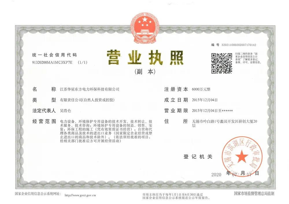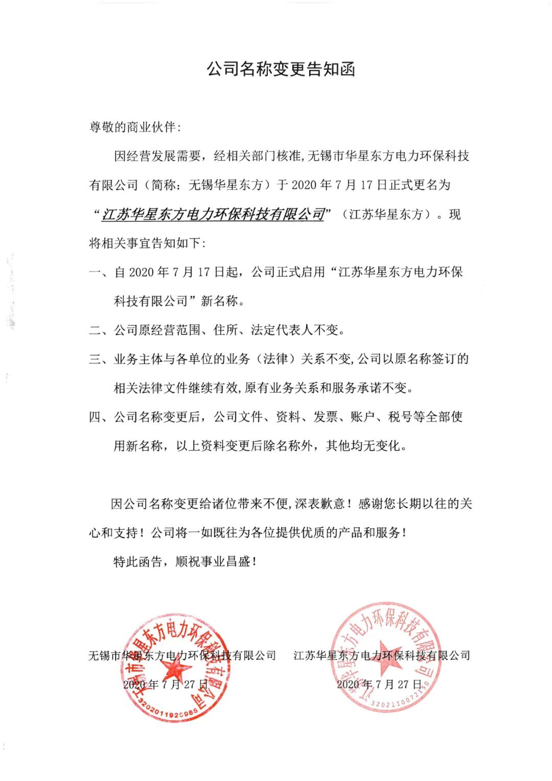 2020年7月17日,無錫市華星東方電力環(huán)??萍加邢薰菊礁麨椋骸敖K華星東方電力環(huán)??萍加邢薰尽?,以下為變更公告: