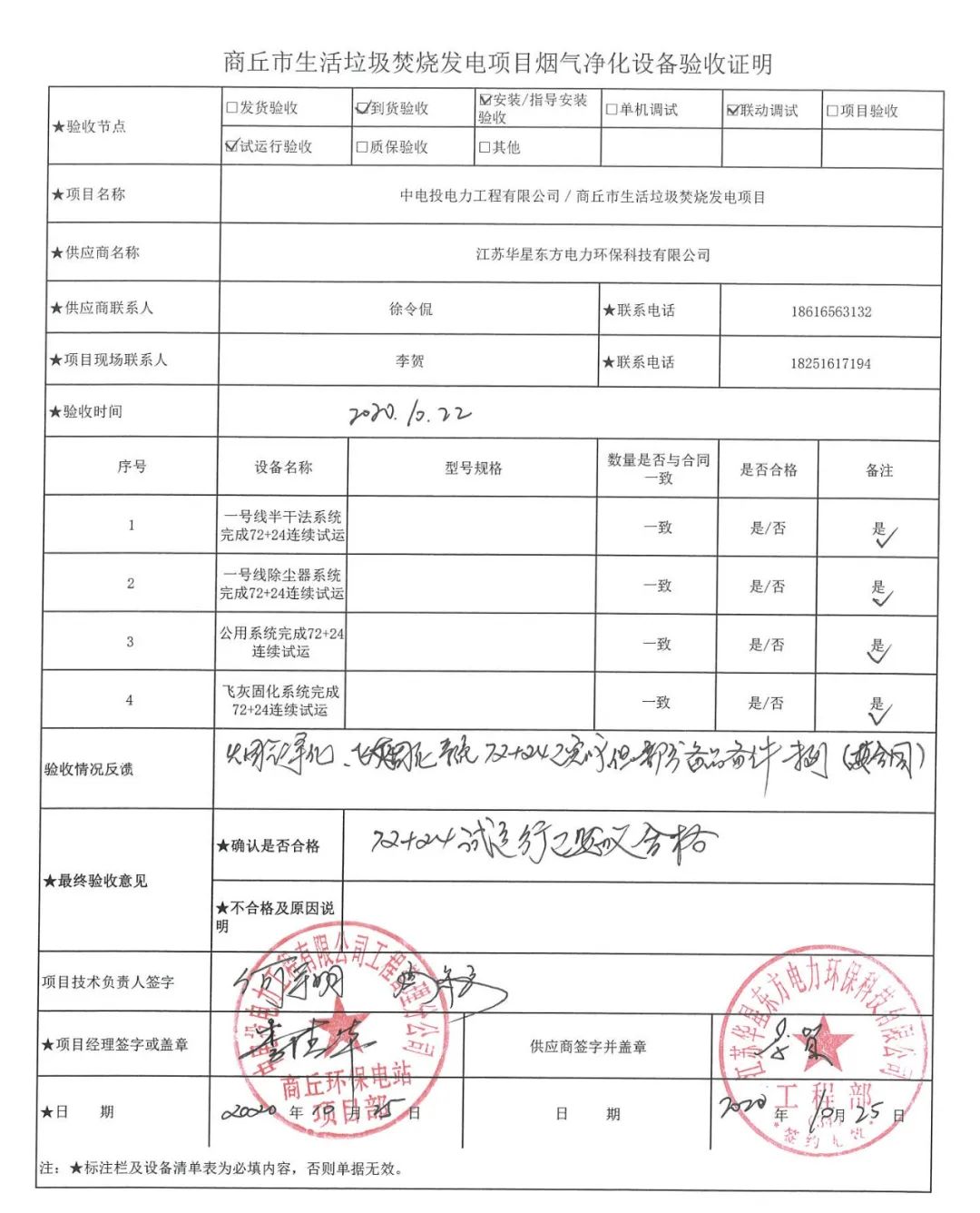 我公司承建的河南省商丘市生活垃圾焚燒發(fā)電項(xiàng)目煙氣凈化工程1號爐于2020年10月25日通過72+24小時(shí)試運(yùn)行。