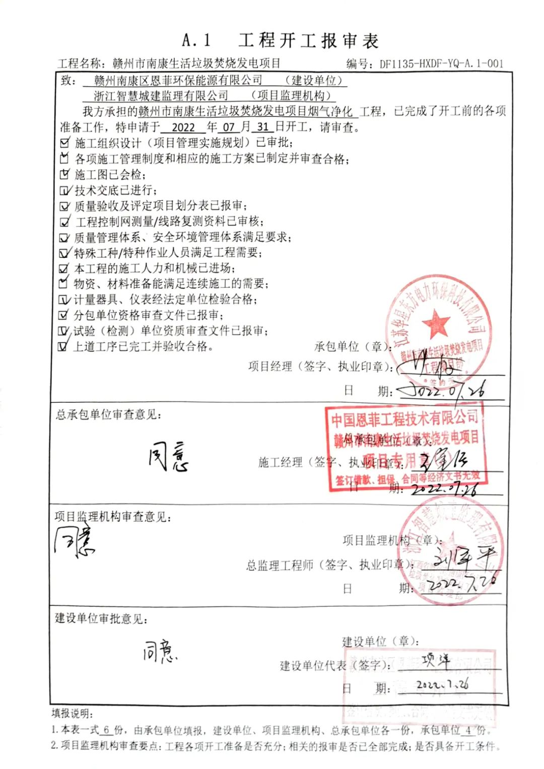 我公司承建的江西省贛州市南康生活垃圾焚燒發(fā)電項目煙氣凈化工程于2022年07月31日開工建設(shè)。 The FGC project undertaken by Huaxing-east for the Nankang waste incineration power plant in Ganzhou, Jiangxi has began construction on July 31, 2022.
