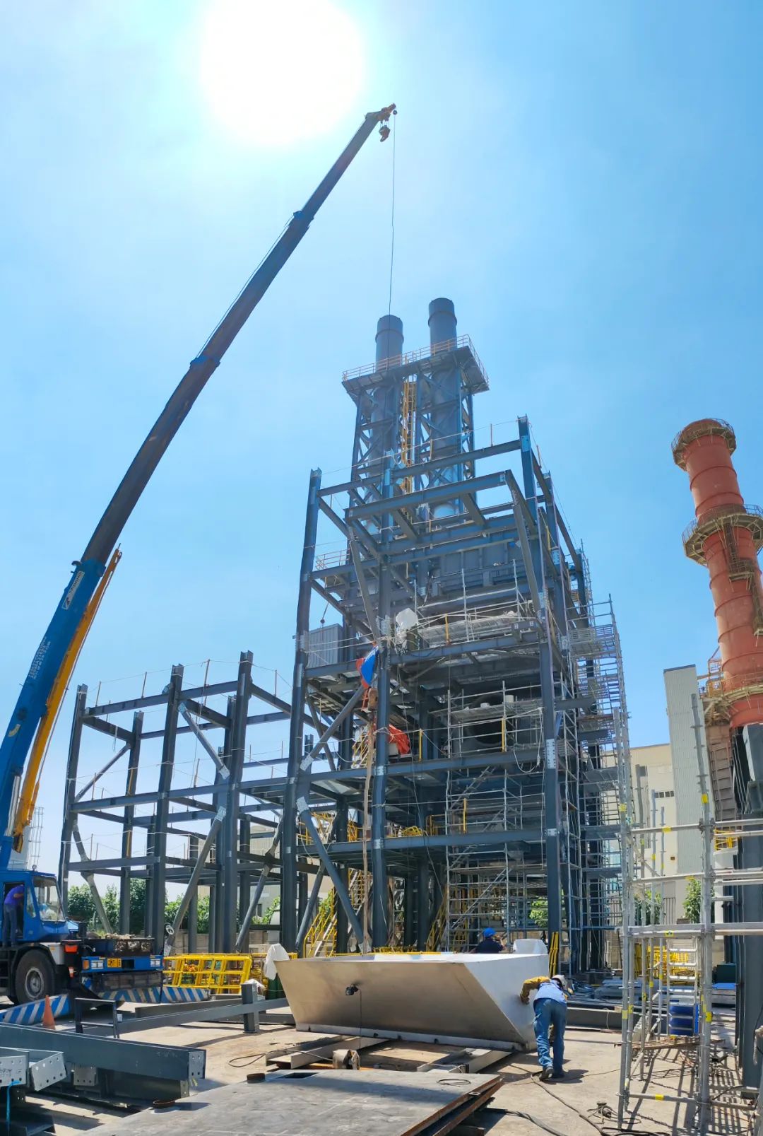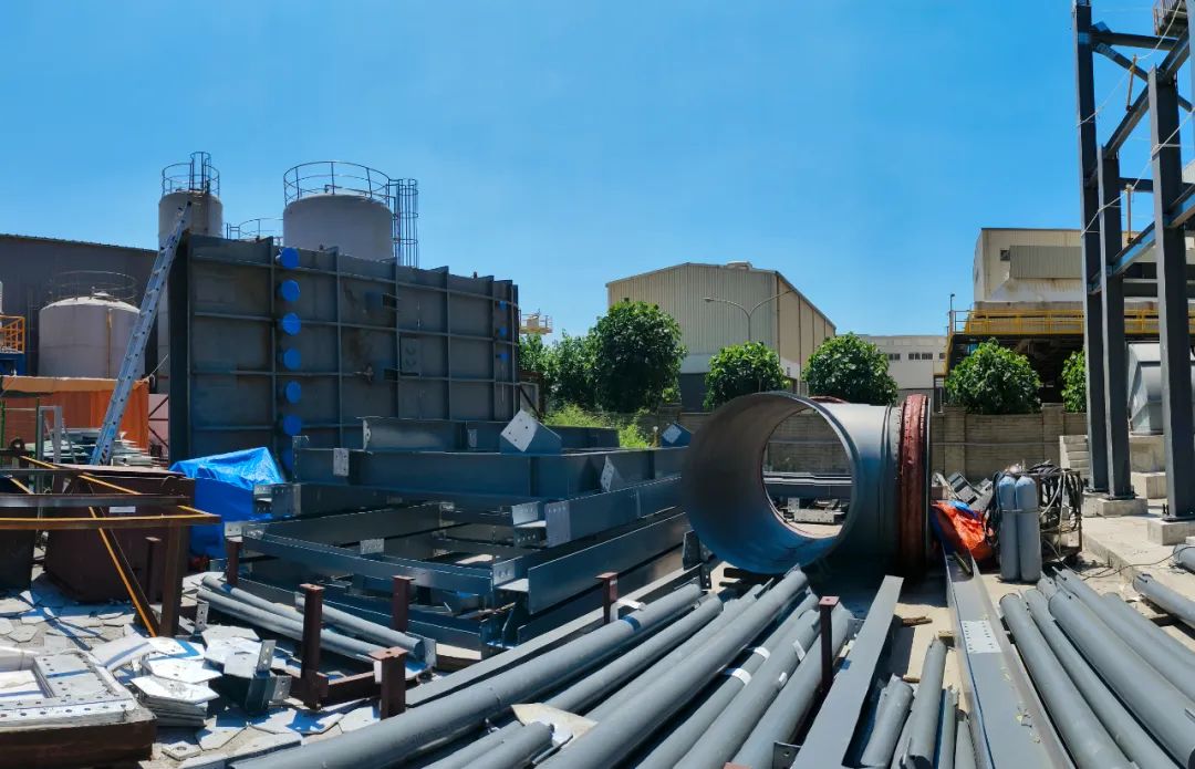 我公司承建的臺灣彰化縣SRF再生能源生活垃圾焚燒發(fā)電興建項目煙氣凈化工程于2023年08月06日開工建設。 The flue gas cleaning project of the SRF renewable energy domestic waste incineration power generation construction project in Changhua County, Taiwan, undertaken by our company, started the construction on August 6, 2023.
