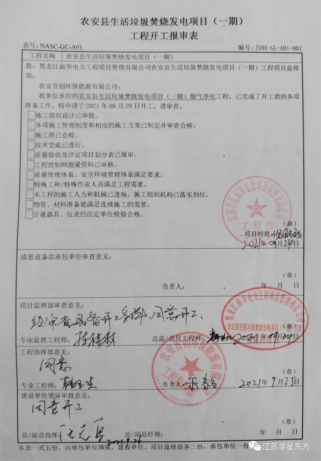 我公司承建的吉林省長春市農(nóng)安生活垃圾焚燒發(fā)電項(xiàng)目煙氣凈化工程于2021年09月28日開工建設(shè)。 The flue gas cleaning project of the Nong'an domestic waste incineration power generation project in Changchun City, Jilin Province, undertaken by our company, started construction on September 18, 2021.
