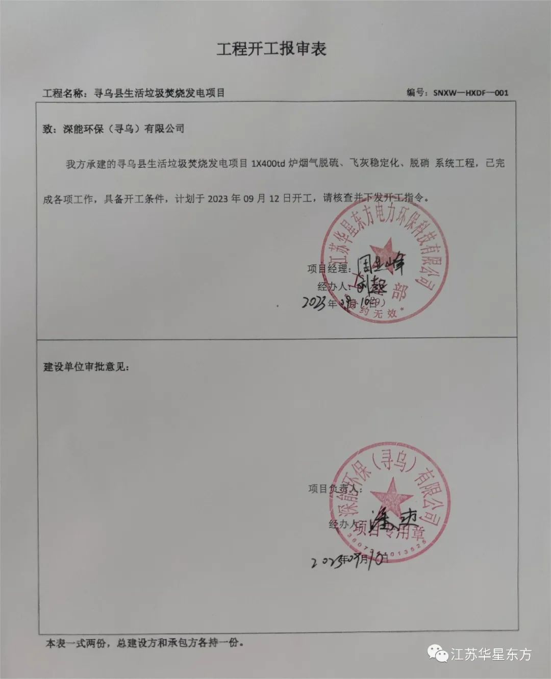 我公司承建的江西省贛州市尋烏生活垃圾焚燒發(fā)電項(xiàng)目煙氣凈化工程于2023年09月10日開(kāi)工建設(shè)。 The flue gas cleaning project of the Xunwu domestic waste incineration power generation project in Ganzhou City, Jiangxi Province, undertaken by our company, started construction on September 10, 2023.