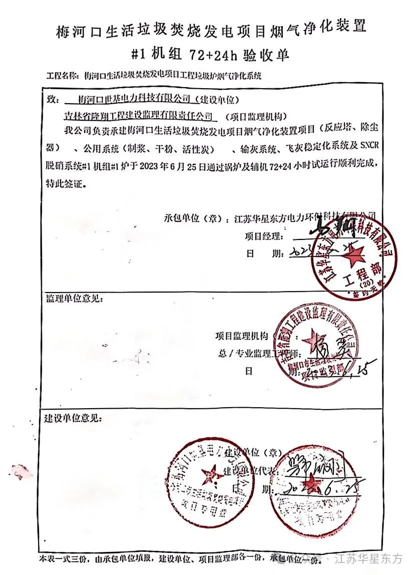 華星東方承建的吉林省梅河口市生活垃圾焚燒發(fā)電項(xiàng)目煙氣凈化工程通過72+24小時試運(yùn)行