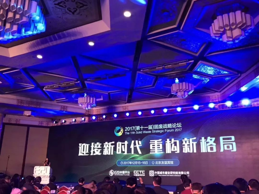 2017年12月15日,一年一度的重量級固體廢棄處理行業(yè)盛典再次舉辦,今年以“迎接新時代、重構(gòu)新格局”為主題的“2017(第十一屆)固廢戰(zhàn)略論壇”在北京友誼飯店盛大開幕,各級政府主管部門領(lǐng)導(dǎo)、固廢領(lǐng)跑企業(yè)、金融機構(gòu)代表、行研機構(gòu)代表及媒體代表等近千人參會。