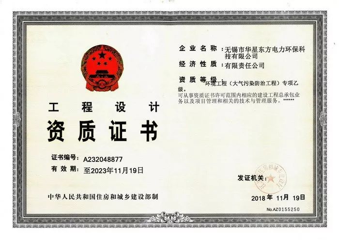 歷經(jīng)多年的人員及工程設(shè)計(jì)經(jīng)驗(yàn)積累,我公司于2018年11月19日獲批并取得了工程設(shè)計(jì)資質(zhì)證書(shū)(環(huán)境工程-大氣污染防治工程專(zhuān)項(xiàng)乙級(jí))。此證書(shū)的取得,不僅是對(duì)公司諸位同仁多年辛勞作出的肯定,更是公司軟實(shí)力的有力提升,極大的堅(jiān)定了我們從事環(huán)保事業(yè)的信心與決心,愿我們與其他環(huán)保人一起攜手,共同捍衛(wèi)全人類(lèi)的碧水藍(lán)天。