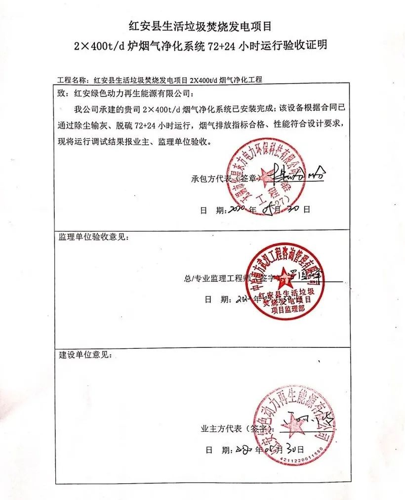 我公司承建的湖北省黃岡市紅安縣生活垃圾焚燒發(fā)電項目煙氣凈化工程于2020年5月30日通過72+24小時試運(yùn)行。
