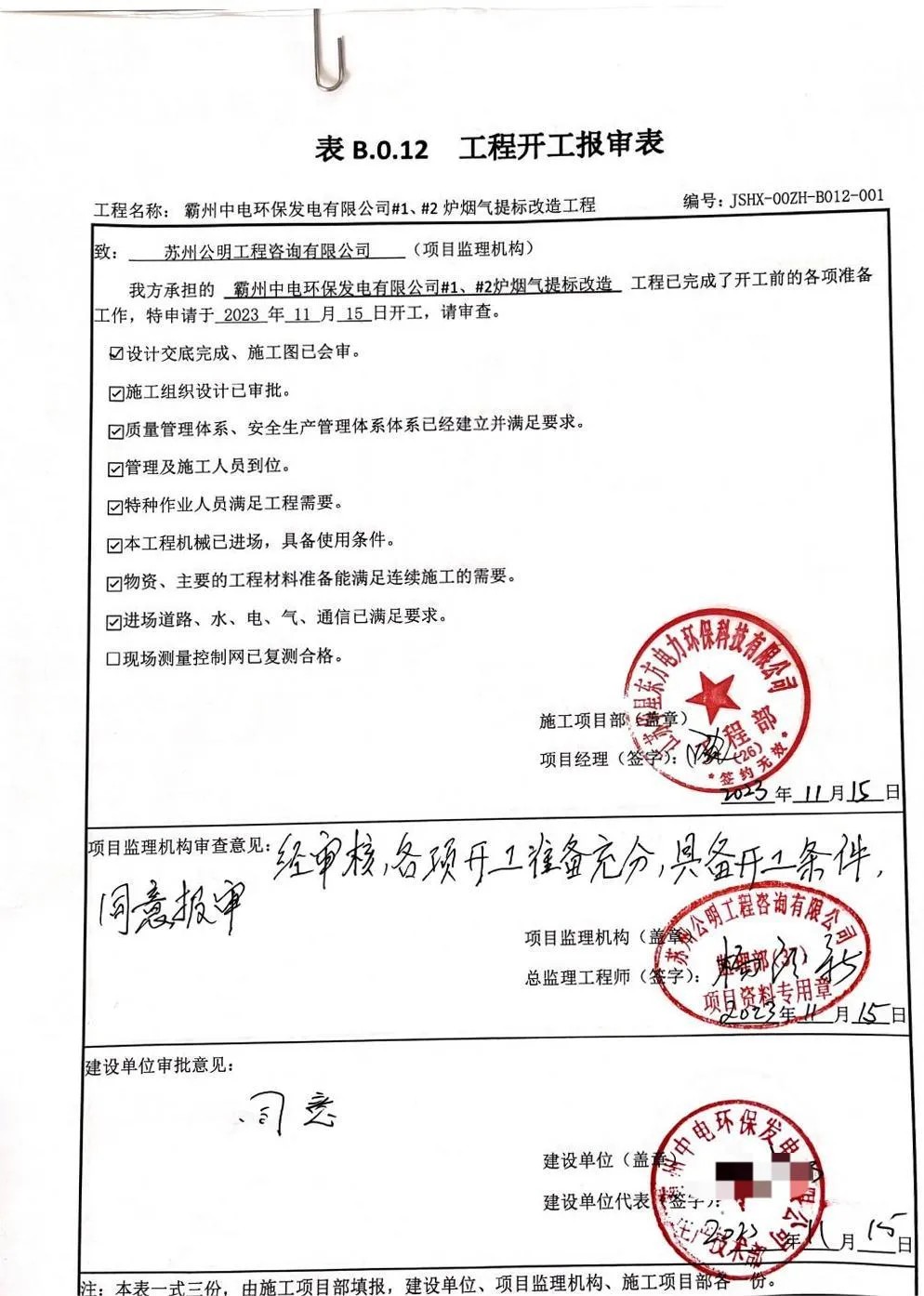 我公司承建的河北省廊坊市霸州生活垃圾焚燒發(fā)電項(xiàng)目煙氣凈化系統(tǒng)提標(biāo)改造工程于2023年11月15日開工建設(shè)。 The flue gas cleaning system standard improvement and renovation project of the Bazhou domestic waste incineration power generation project in Langfang City, Hebei Province, undertaken by our company, started the construction phase on November 15, 2023.